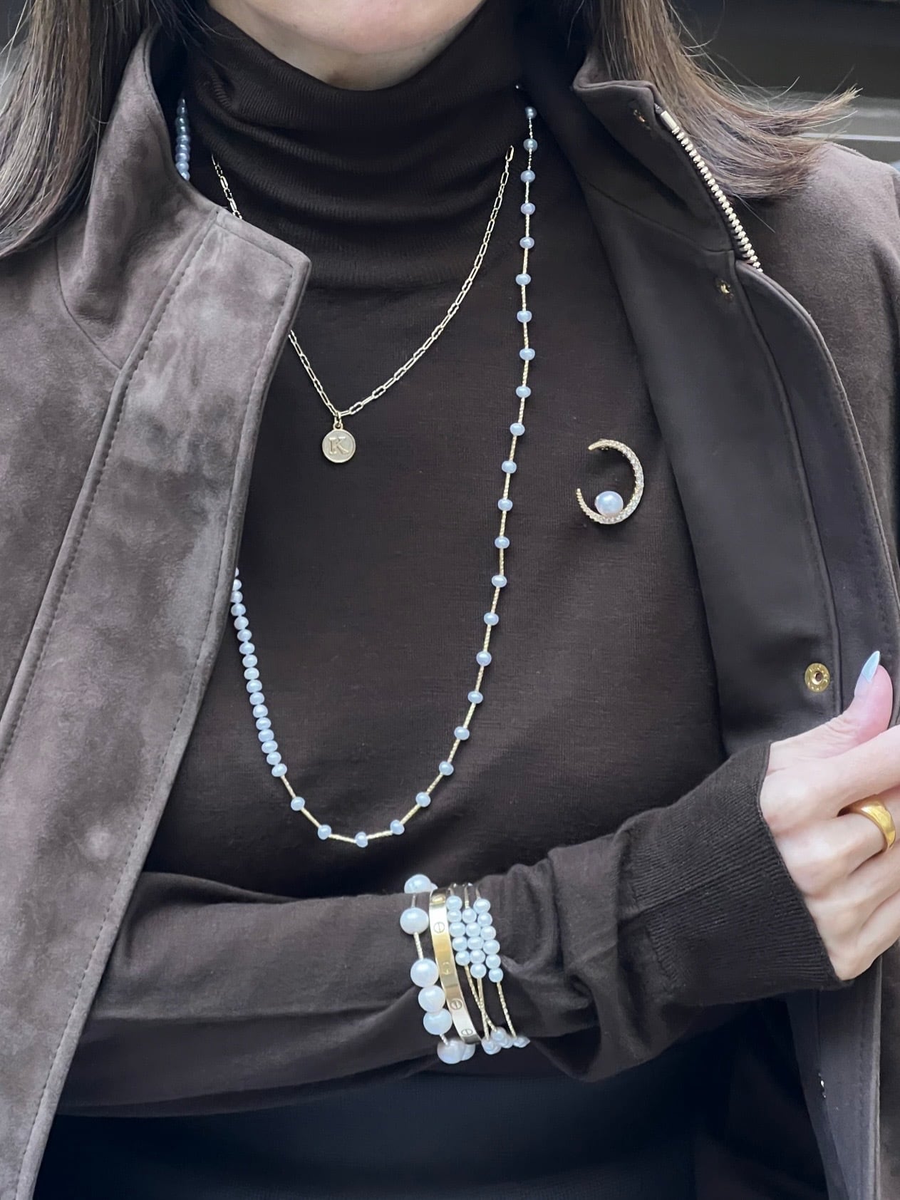 一本でも存在感がありますが、他のネックレスとの重ねづけでその魅力は何倍にもアップいたします。