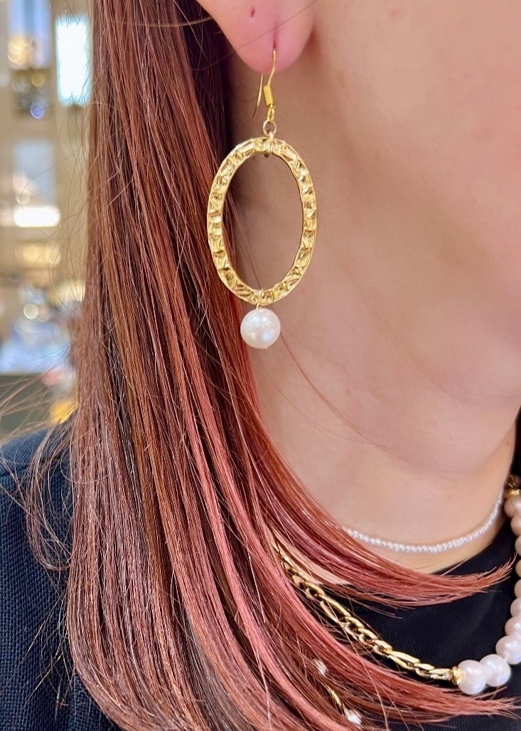 【Details / 商品説明】どこかエスニックな雰囲気が漂うインパクトのあるメタルパーツに、小さめのバロックパールが添えられたモダンなピアス(/イヤリング)。リゾートでのコーディネートに華を添えること間違いなしです。