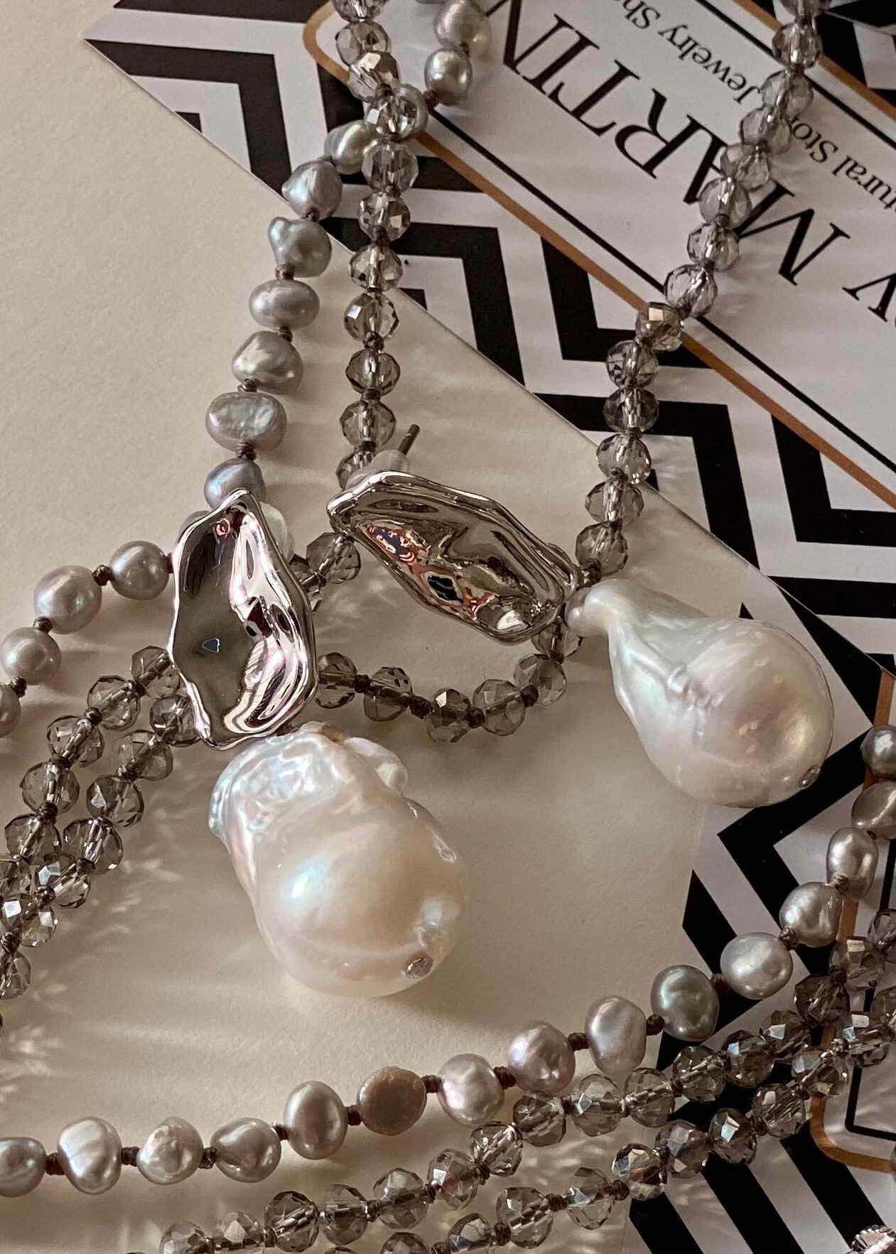 ビッグバロックパールスウェルピアス(シルバーカラー × ホワイトパール)