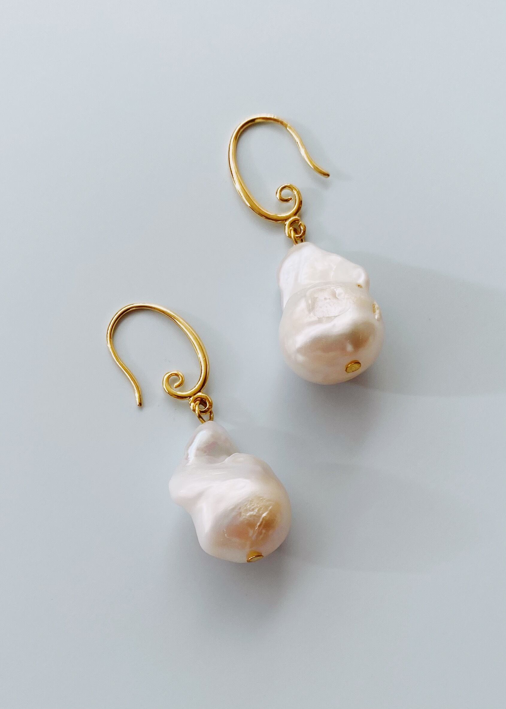 【Details / 商品説明】大粒のバロックパールの輝きが溢れ、耳元両サイドから顔色をワントーン明るくしてくれるピアス。揺れるバロックパールはファッショナブルにエレガントなオーラを醸し出します。