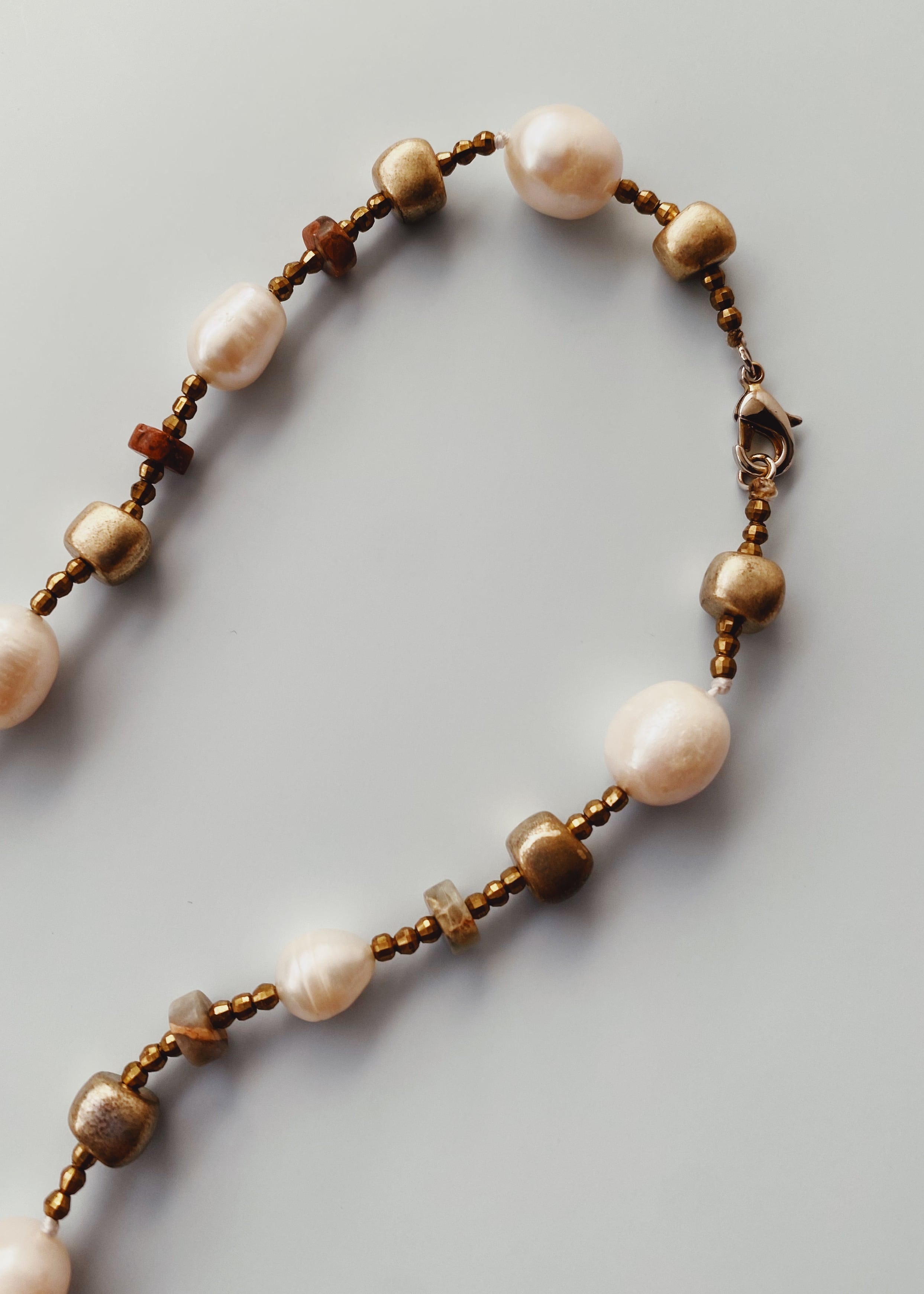 【Attention / ご一読ください】淡水パール、アマゾナイトはどちらも天然素材のため、色味、質感、大きさ、形には個体差がございます。また、特有のエクボ(くぼみ)やキズのようにみえる部分もございますがそれらはダメージではございません。天然素材ならでは風合い、それぞれの個性としてお楽しみ頂けますと幸いです。個体差、風合いなどの理由による返品・交換は承れませんので何卒、ご了承の上でご購入の検討をお願い申し上げます。
