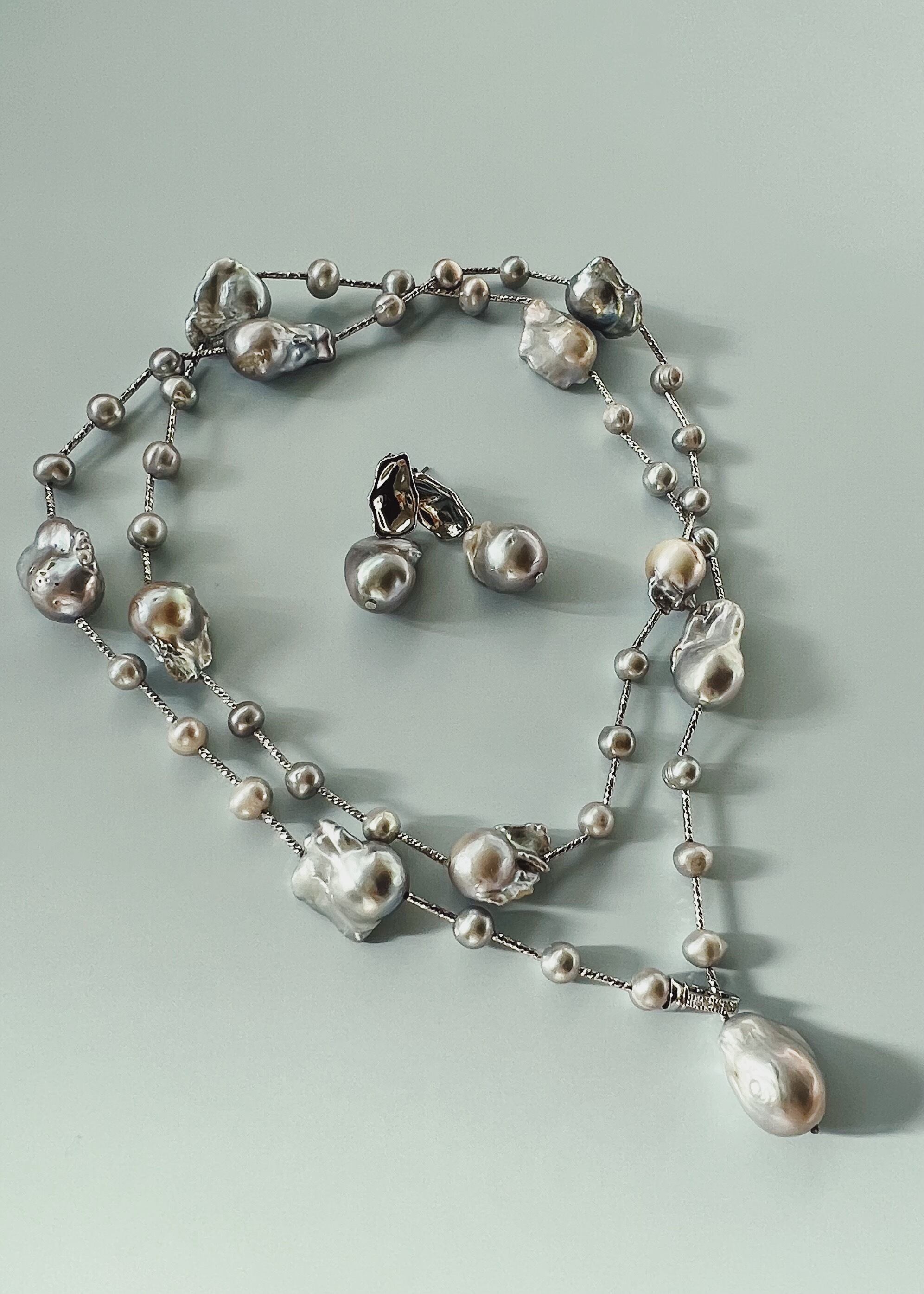 シルバーカラーとグレーパールは、洗練された大人にぴったりの組み合わせです。