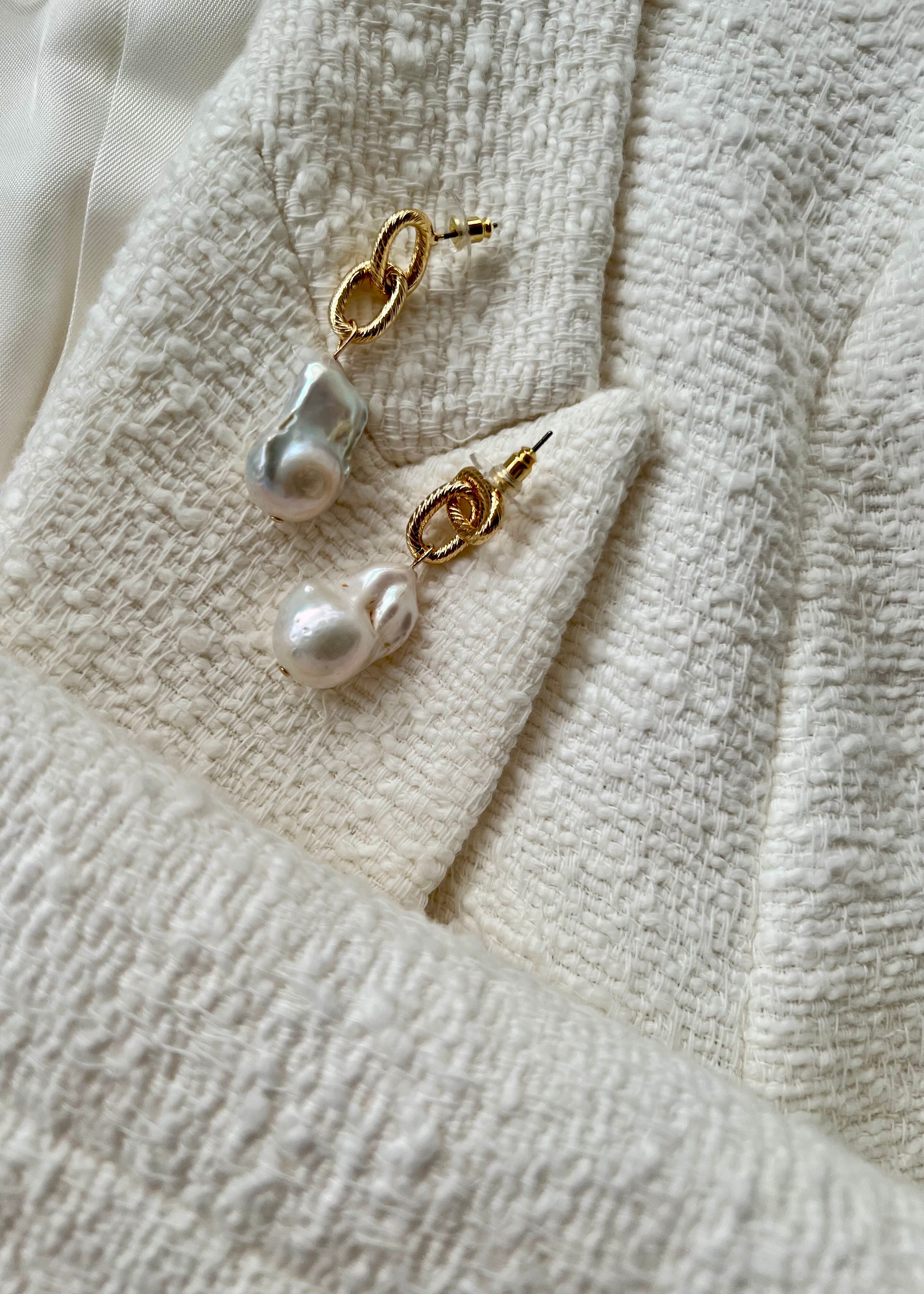 マリンチェーンビッグバロックパールピアス(ゴールドカラー)