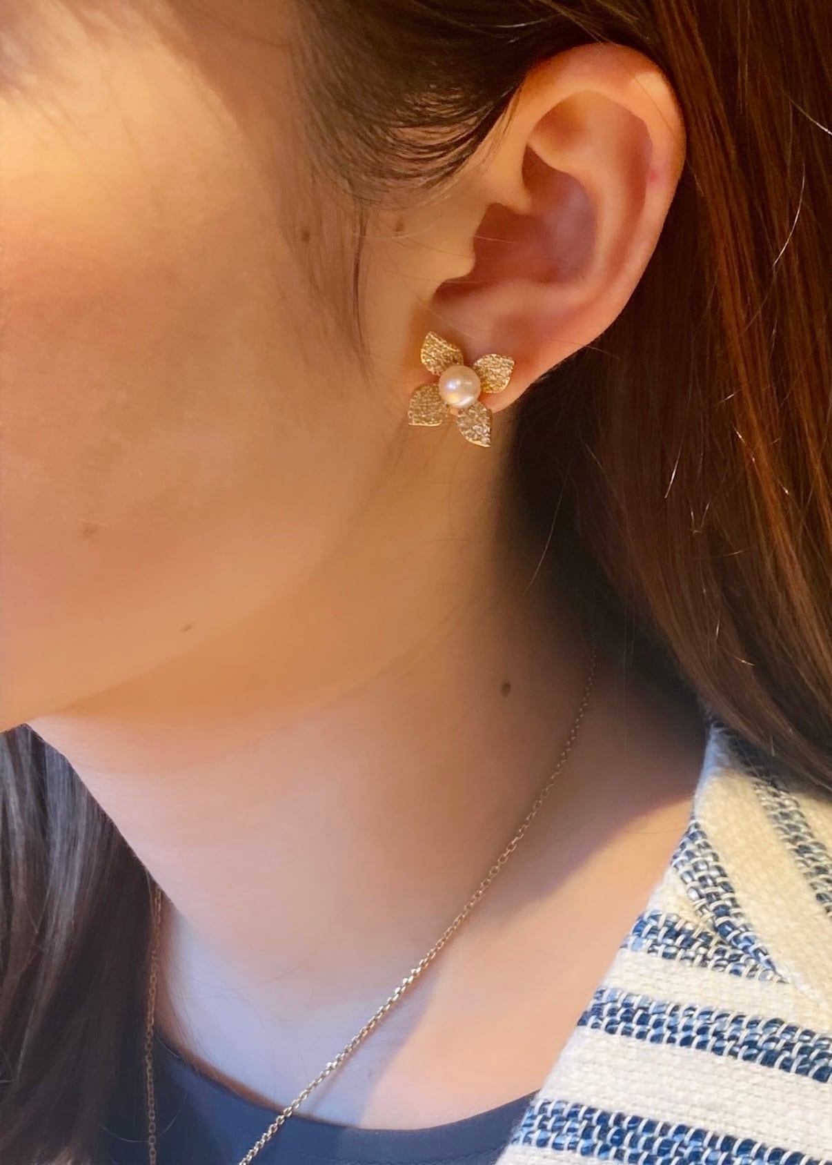 サイズ:モチーフ タテ約2cm×ヨコ約2cm、淡水パール直径約6mm