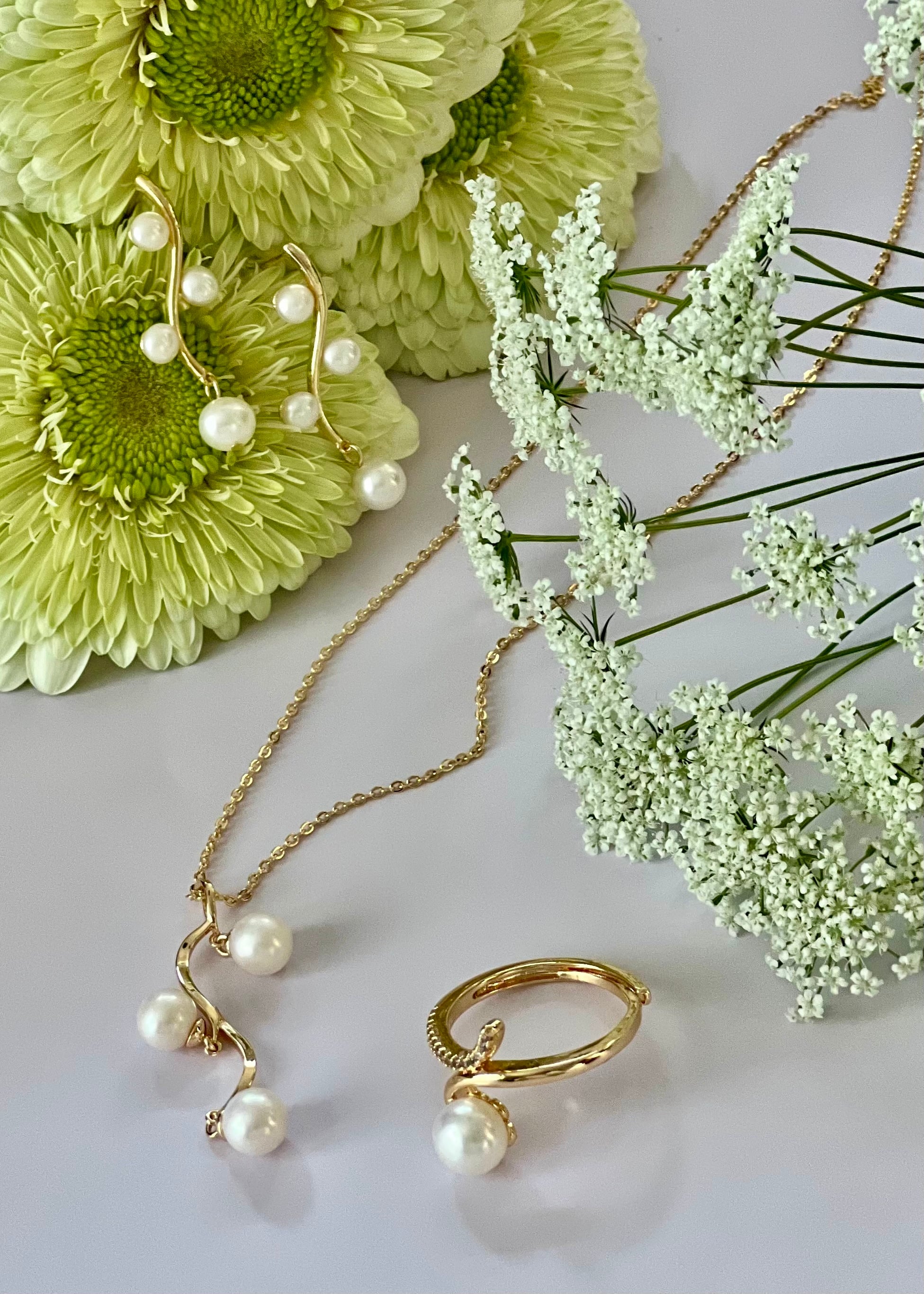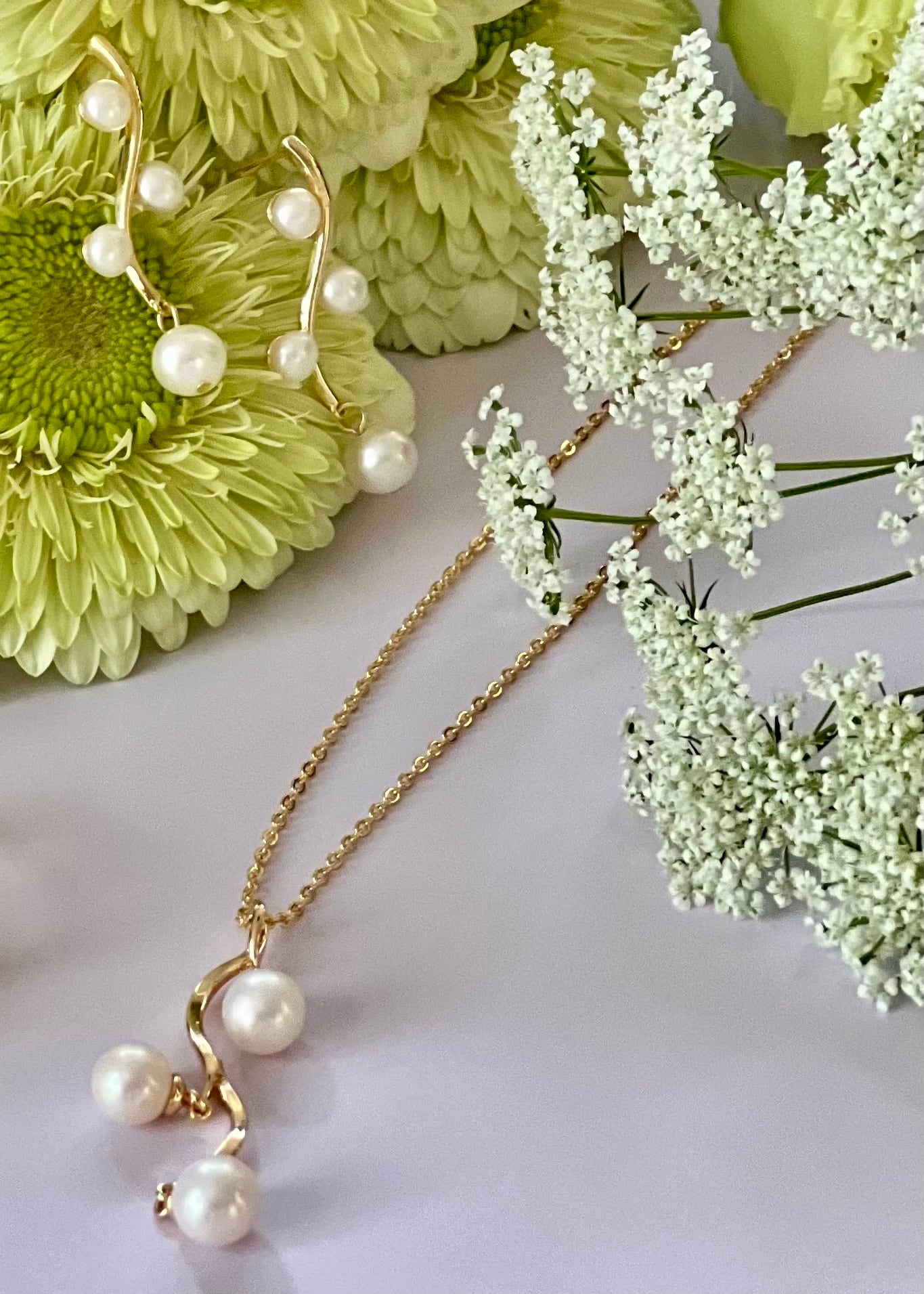 素材:淡水パール、14Kゴールドプレーテッド(シルバー)