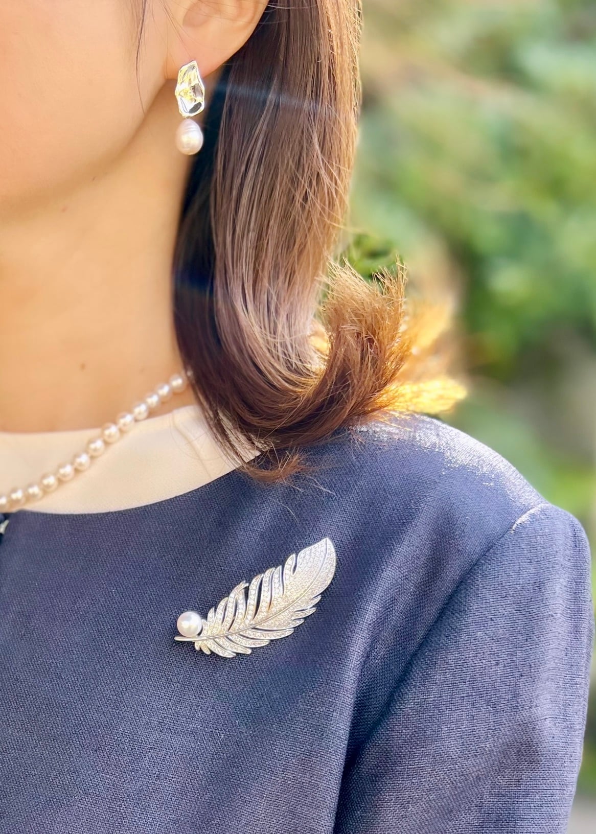 (シルバーカラーはパールの白さを引き立て、清潔感のある印象を与えます)