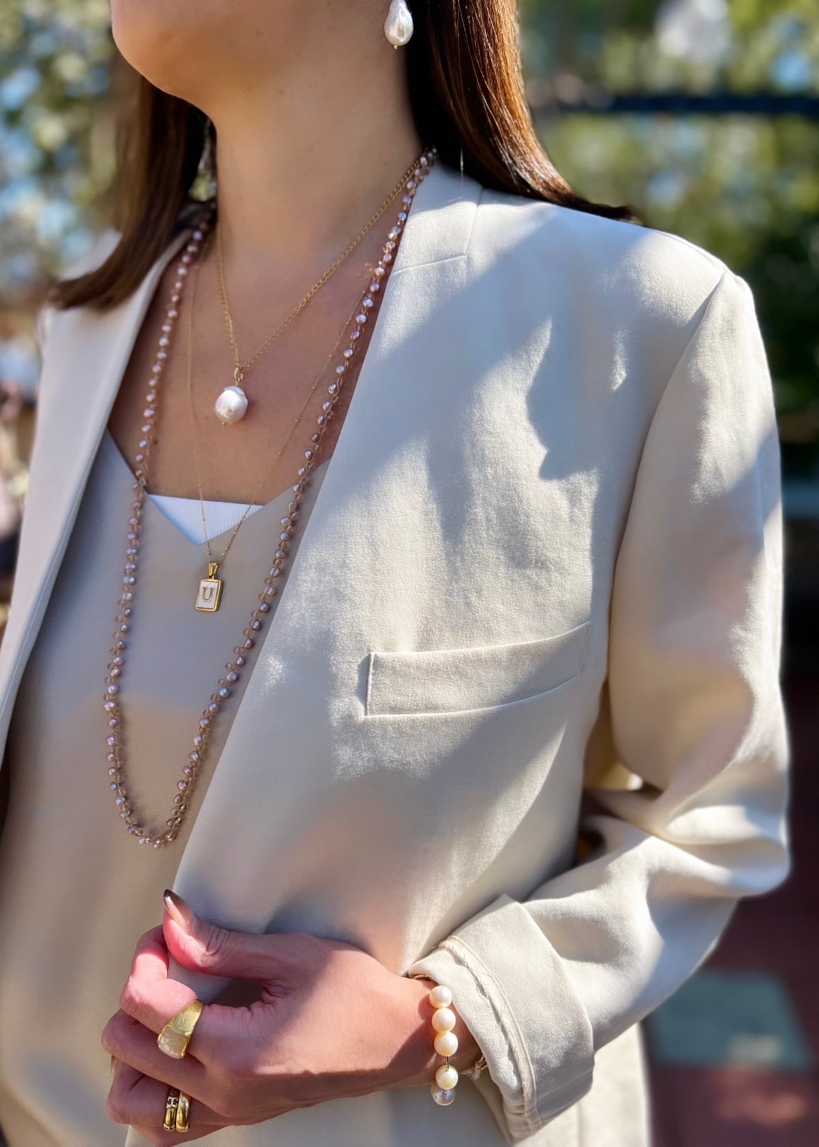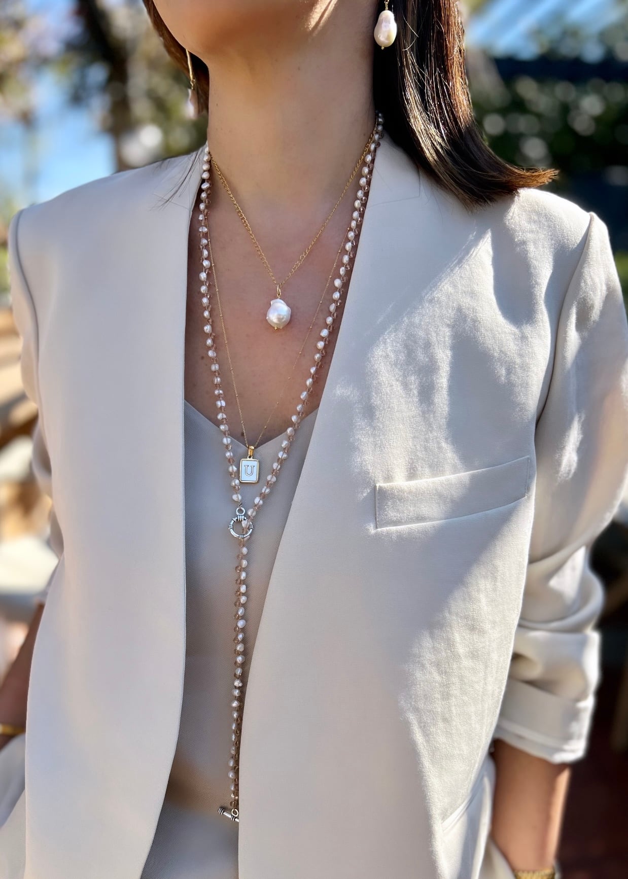 【Attention / ご一読ください】淡水パールは天然素材のため、色味、質感、大きさ、形には個体差がございます。また、特有のキズのようにみえる部分もございますがそれらはダメージではございません。天然素材ならでは風合い、それぞれの個性としてお楽しみ頂けますと幸いです。個体差、風合いなどの理由による返品・交換は承れませんので何卒、ご了承の上でご購入の検討をお願い申し上げます。