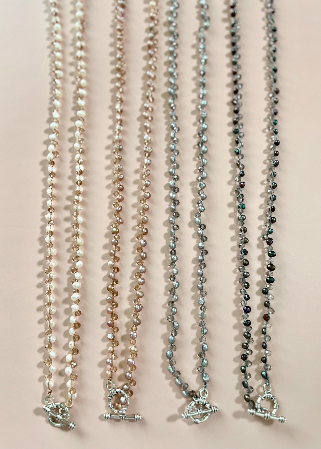 画像5~6枚目:(左から)ホワイトパール x ベージュクリスタル、ピンクベージュパール x ベージュクリスタル、ライトグレーパール x グレークリスタル、ダークグレーパール x グレークリスタル