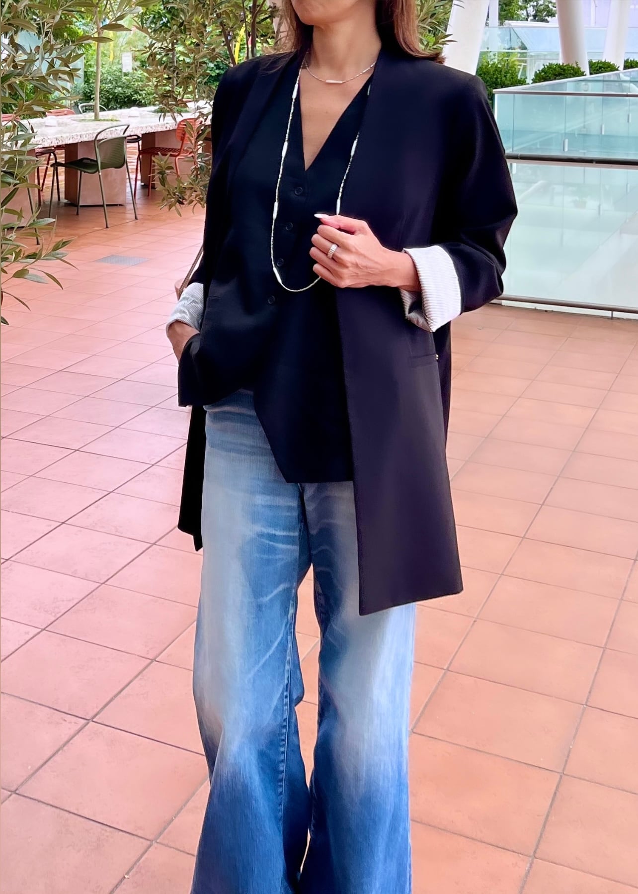 お手持ちの同系色のショートネックレスとの重ねづけはもちろん、同シリーズのショートネックレスバージョンとの重ねづけもおすすめです。